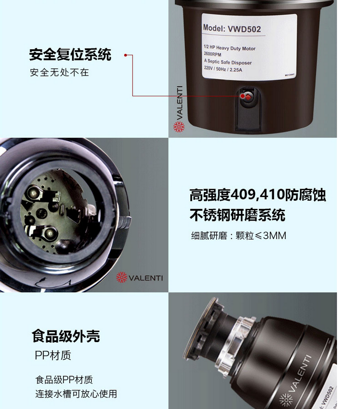 意大利VALENTI 華倫帝家用廚房食物垃圾處理器豪華型VWD502