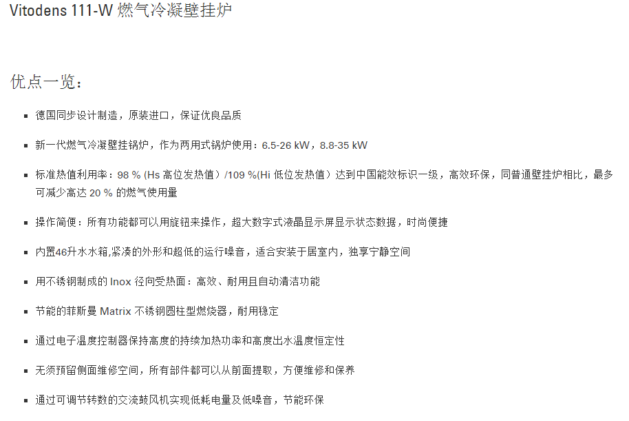德國菲斯曼水箱內(nèi)置式冷凝爐 Vitopend 111-W